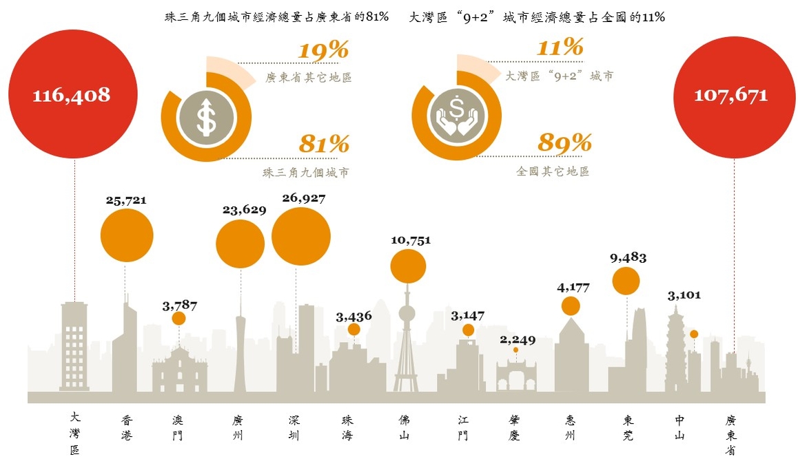 粵港澳大灣區英語 Guangdong-Hong Kong-Macao Greater Bay Area 葡萄牙語 Grande Baía Guangdong-Hong Kong-Macau 簡稱大灣區GBA 是由圍繞中華人民共和國 珠江三角洲地區 伶仃洋組成的城市群包括廣東省九個相鄰城市廣州深圳兩個副省級市和珠海佛山東莞中山江門惠州肇慶. 粵港澳大灣區發展規劃綱要 英文譯本 葡文譯本 粵港澳大灣區發展規劃綱要49項直接指向澳門的內容.
